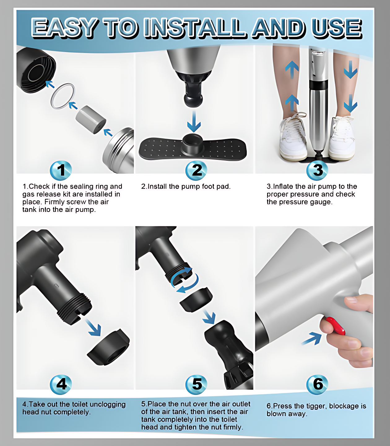 Traditional plungers depend on surface water pressure, which struggles with deep or compacted clogs. This tools releases focused air pressure that travels further into the pipe, making it faster, cleaner, and more effective for tough blockages.